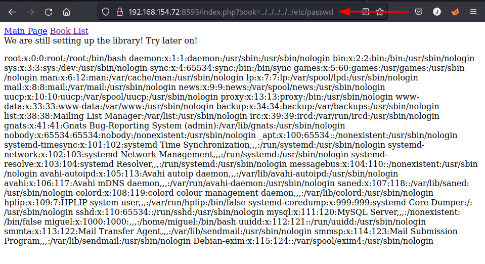 If we follow the link to for “Book List” we find a PHP page with exposed parameters in the address bar.